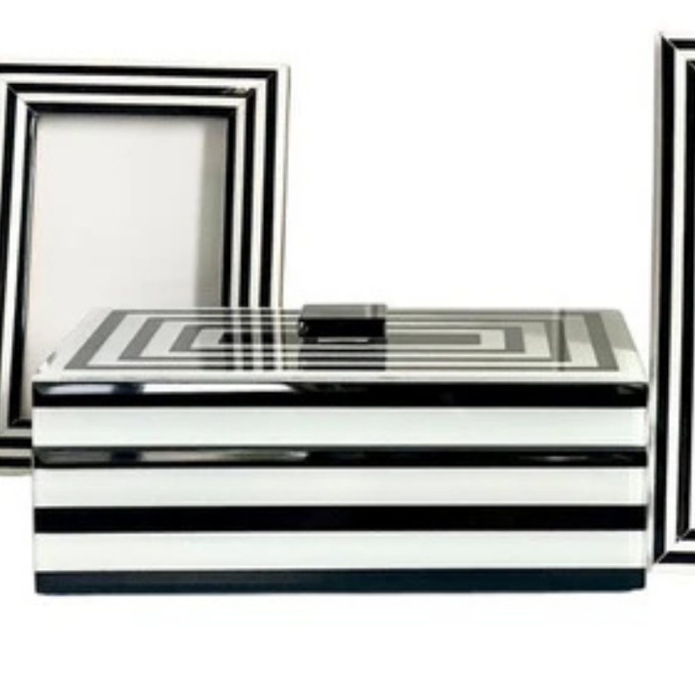 Glass Bevelled Black & White Box 18x11.7.5cm