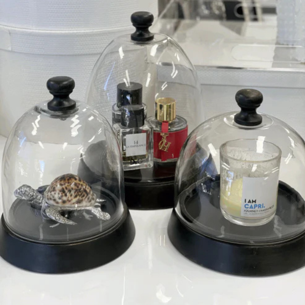 Display Stand w Glass Cloche - Black Small 21x20cm