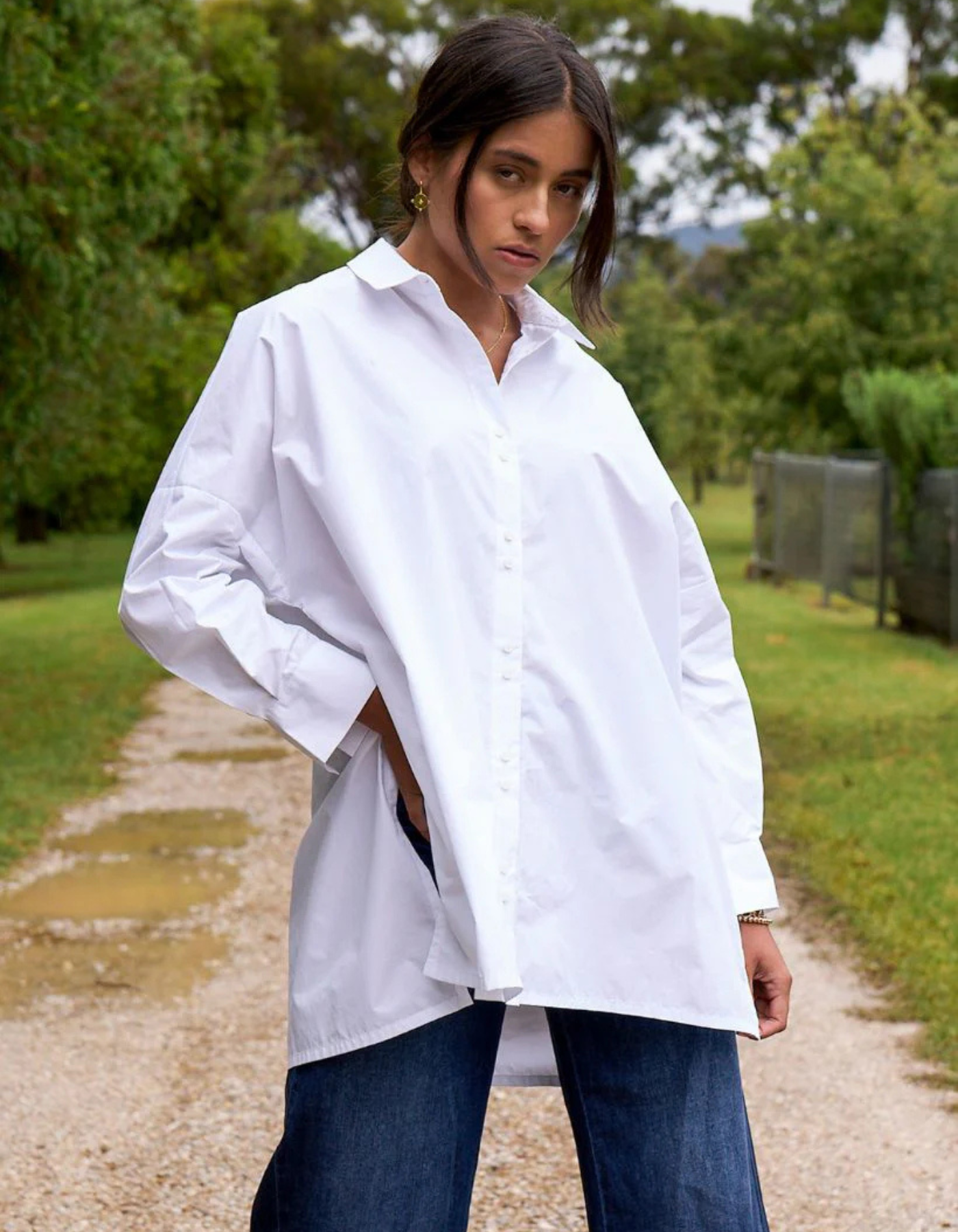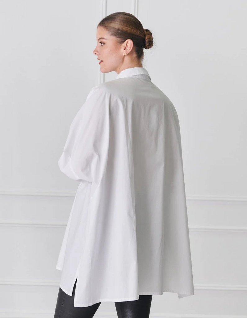 Let us introduce you to your new favourite Emmanuella Shirt White. The Emmanuella Shirt in classic white is the kind of wardrobe essential you will reach for again and again. Made from 100% cotton, this shirt feels beautifully soft and breathable, making it perfect for every season. The free size fit drapes effortlessly, giving you that relaxed yet polished look we all adore.