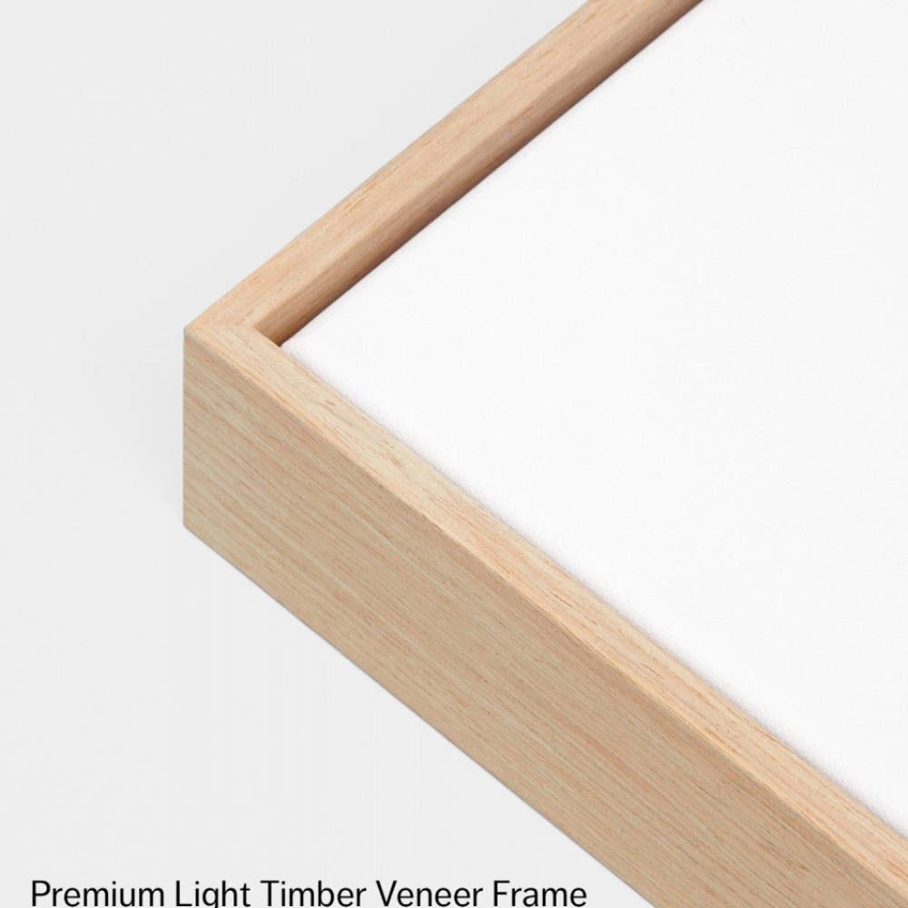 Outer floating 'shadow box' frame for this canvas is Premium Light Timber Veneer finish