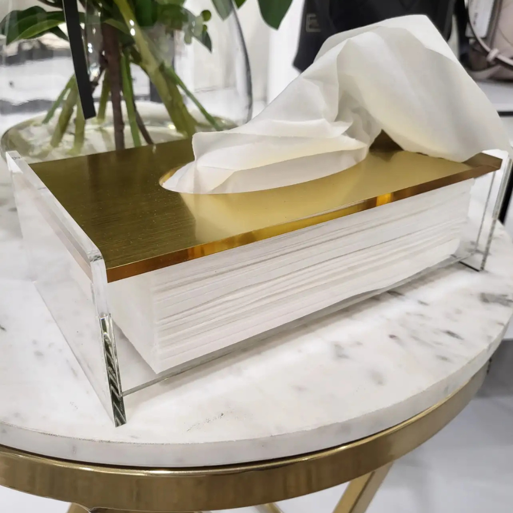 Rectangular Tissue Box Lacquered Gold w Flip Lid