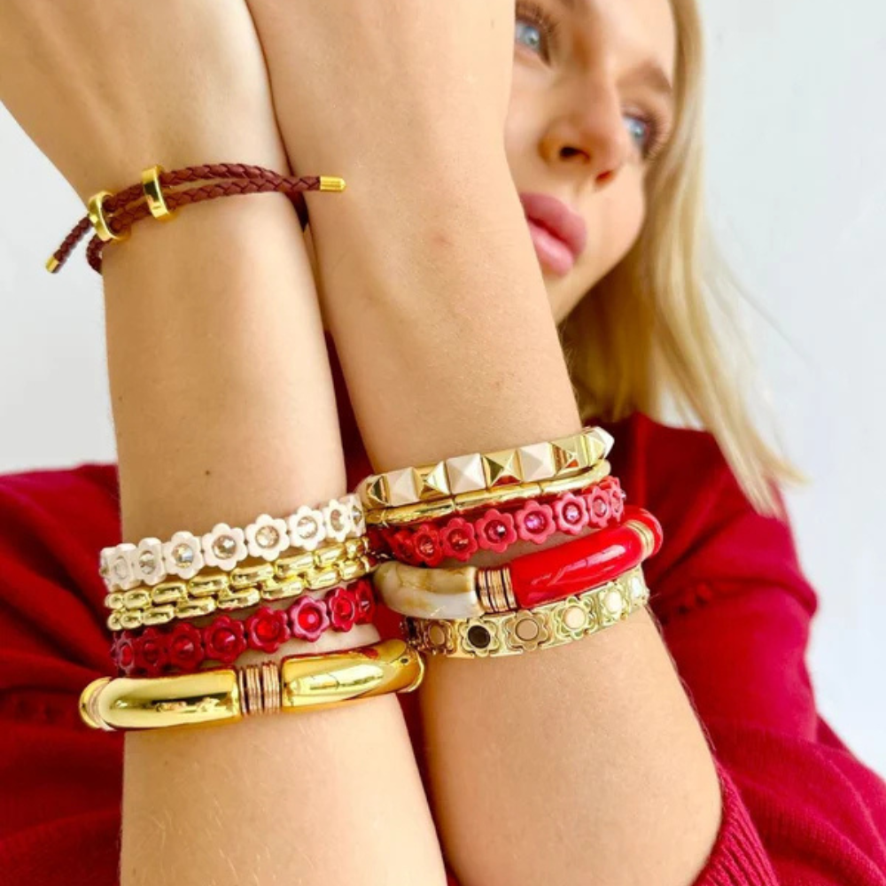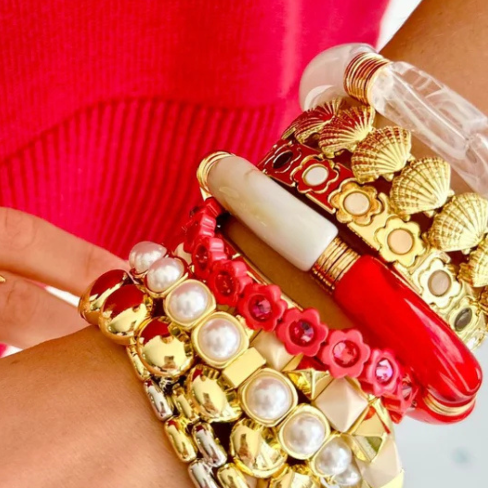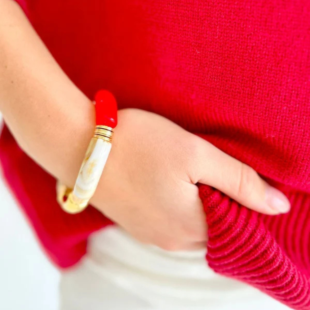 Add a bold splash of gold, marble and red to your accessory collection with this Chunky and sophisticated bracelet.