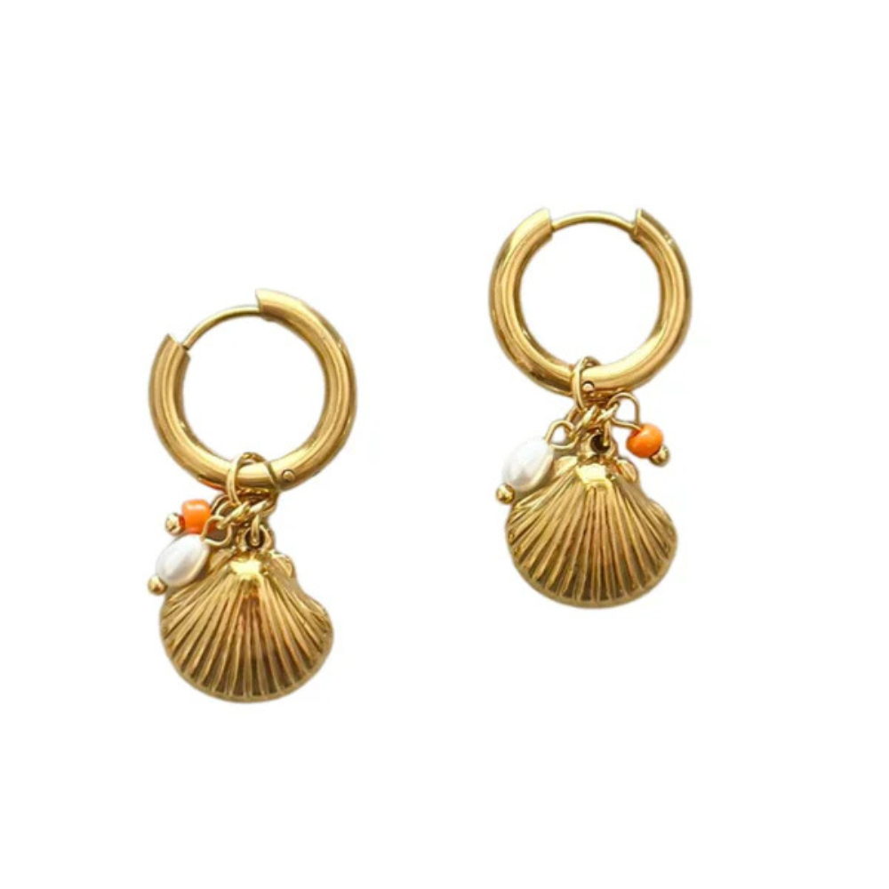 Shell and Charm Hoop Earrings Gold is backordered and will ship as soon as it is back in stock.