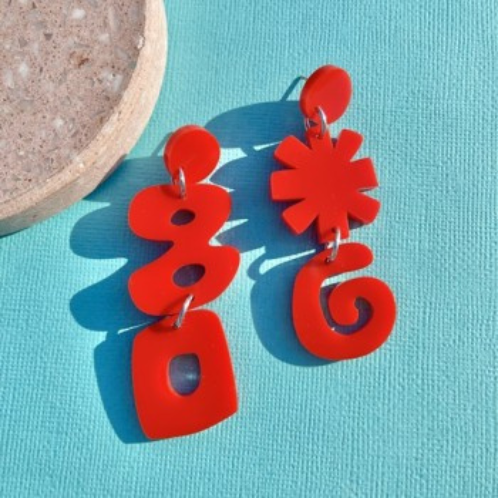 "Asterisk" Double Tiered Stud Earring Red