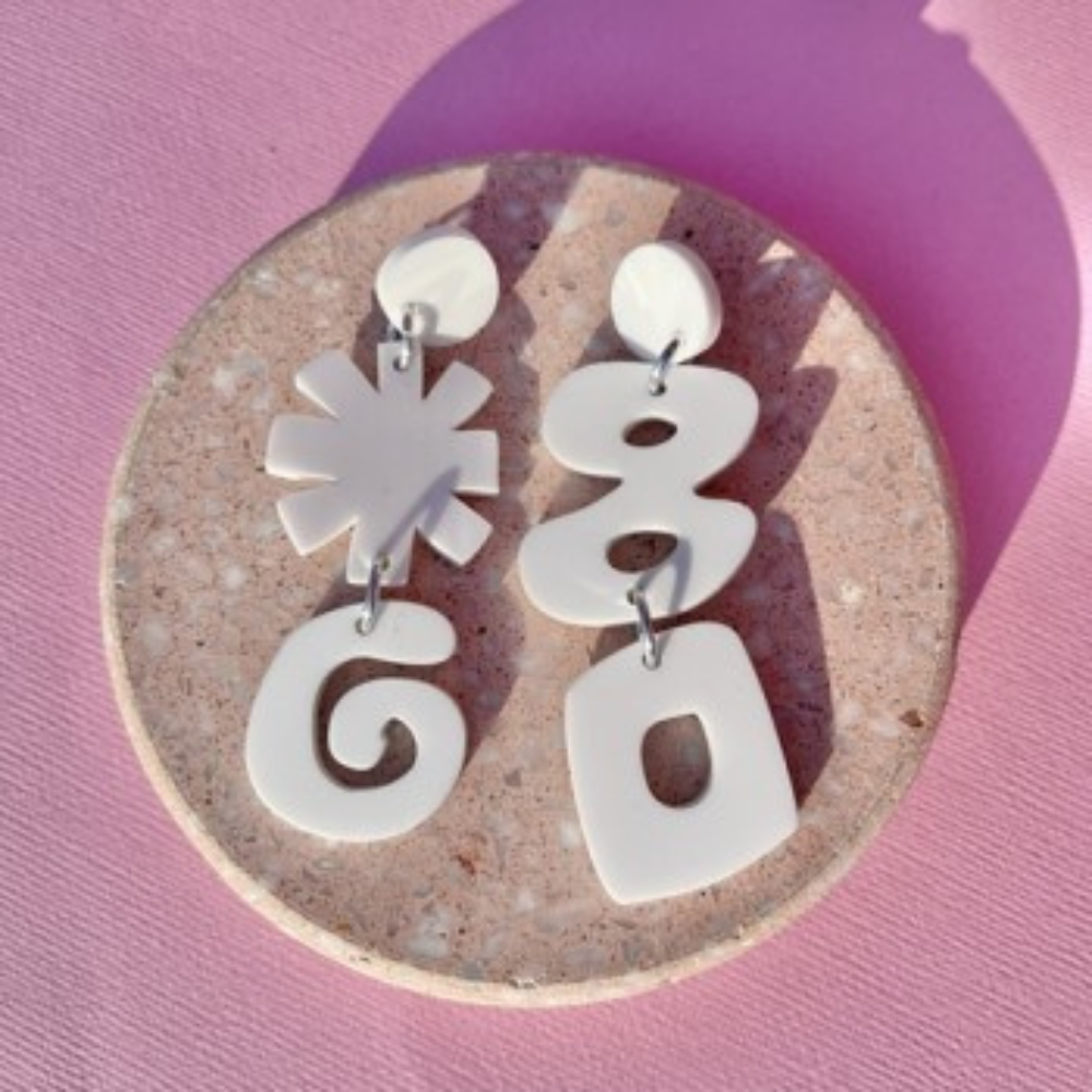 "Asterisck" Double Tier Stud Earring - White