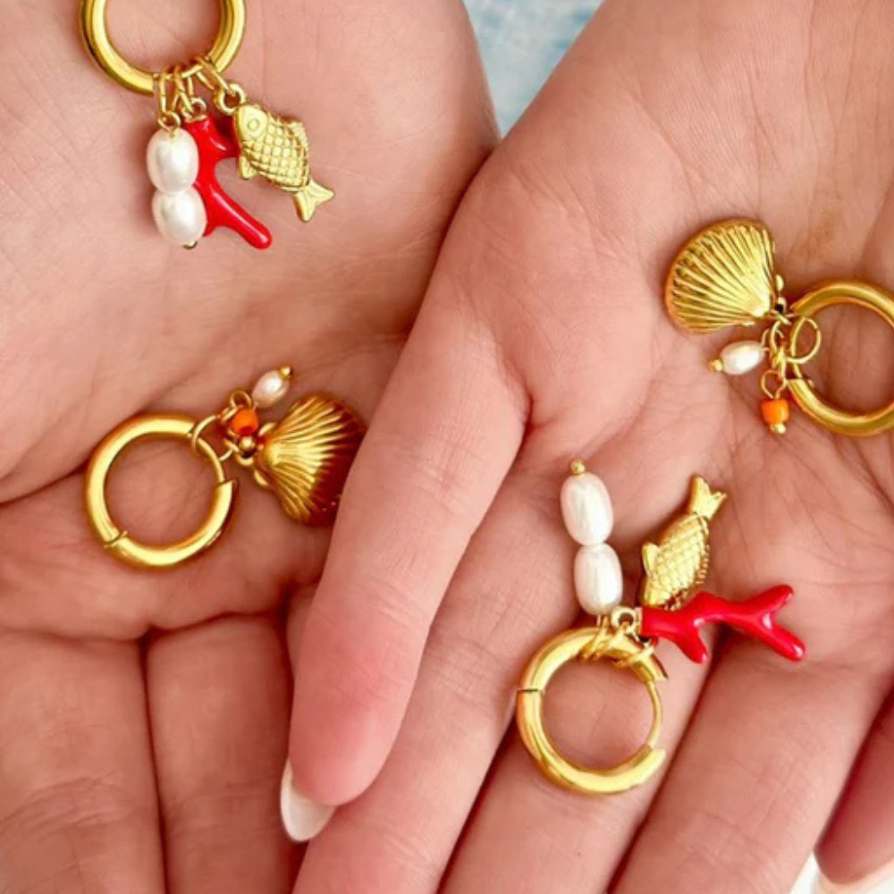 Shell and Charm Hoop Earrings Gold