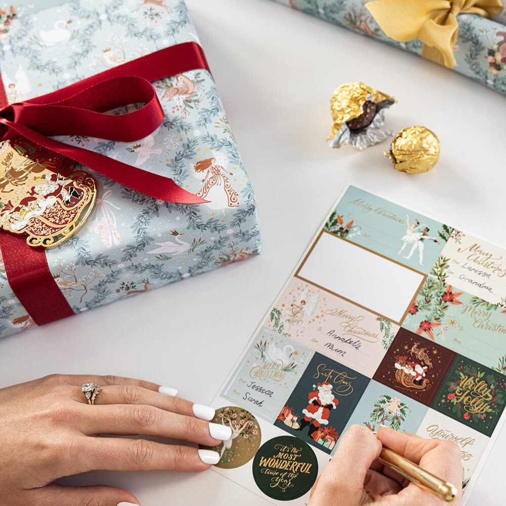 "An Enchanted Christmas" gold foiled adhesive stickers.