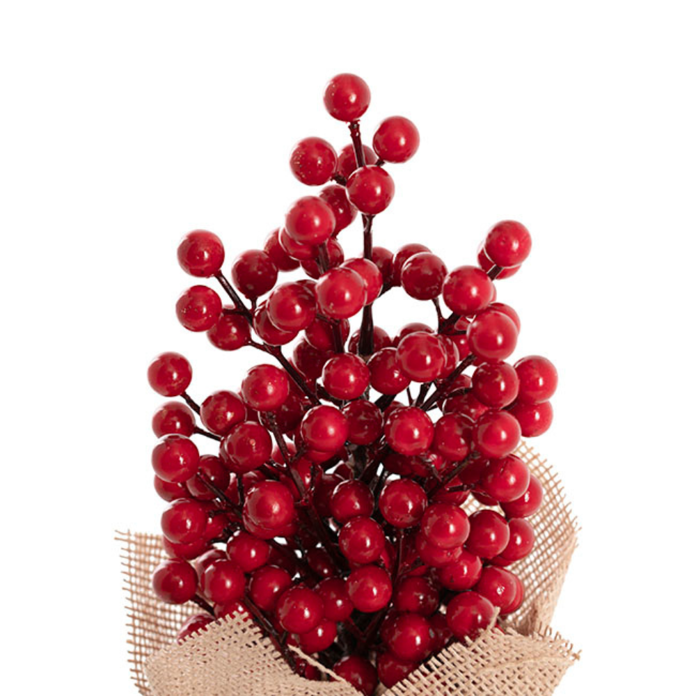 Use this premium mini fake berry tree as a potted plant or a tabletop Christmas tree. Whether given as a festive gift or decorated to be a mini Christmas tree, this tree shines with holiday spirit.