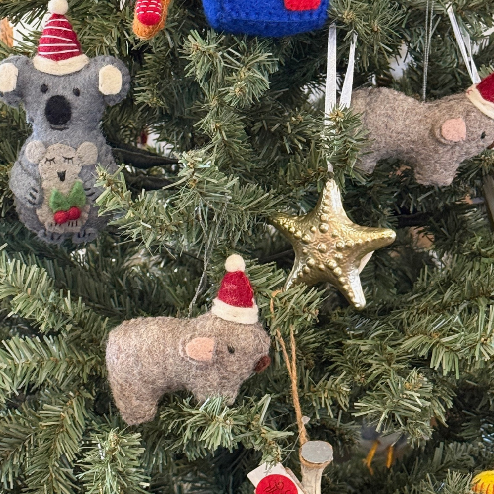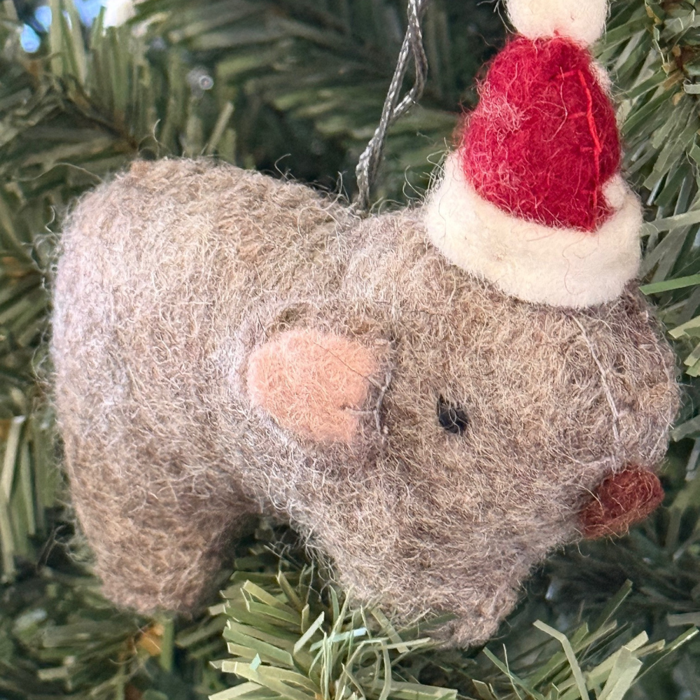 Felt Christmas Ornament - Wombat w Hat Brown is backordered and will ship as soon as it is back in stock.