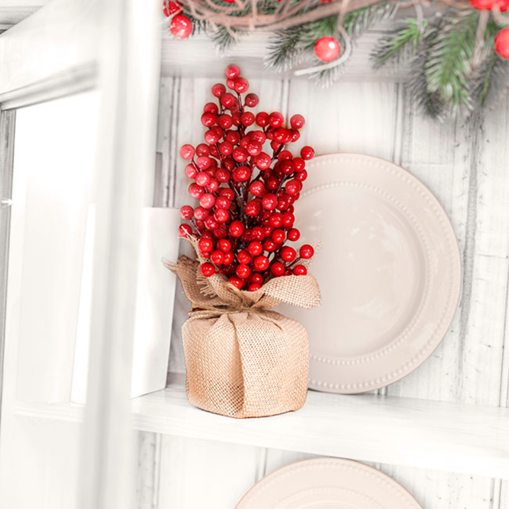 christmas Berry Burlap Table Top Tree Red 38cmH