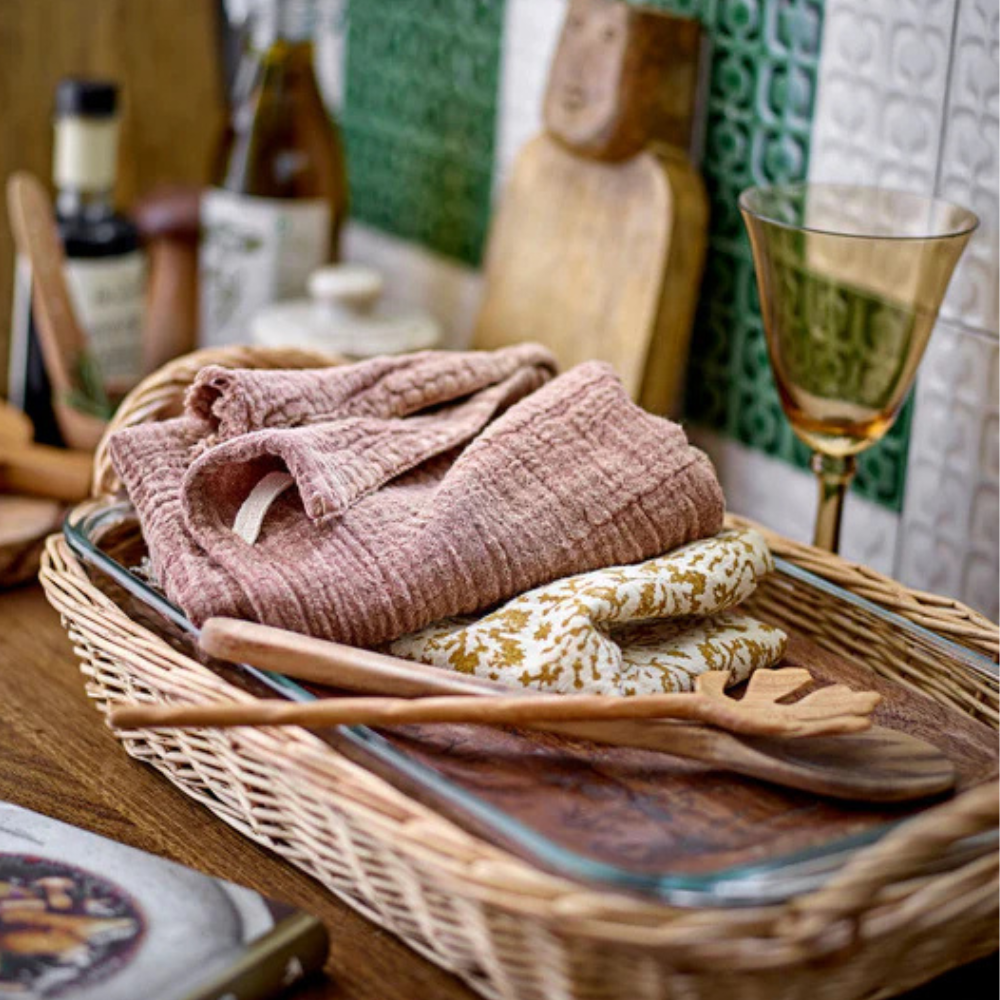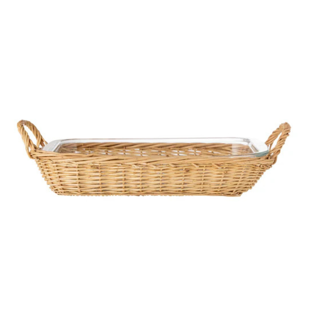 Mariam Glass Dish  w/basket is an ovenproof serving dish in glass that is perfect for cooking and serving delicious dishes. The dish is also equipped with a beautiful basket of willow that gives a natural and rustic touch to your table.