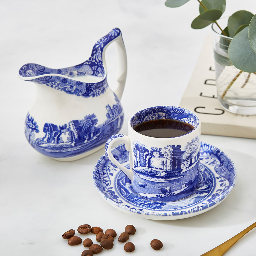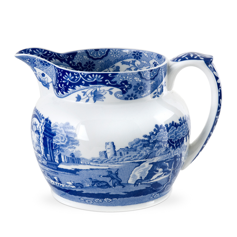 Spode's beautiful blue and white collection was launched in 1816 and has been manufactured ever since. Blue Italian features a finely detailed 18th century Imari Oriental border encompassing a scene inspired by the Italian countryside. This Blue Italian Jug is a perfect way to serve your milk.