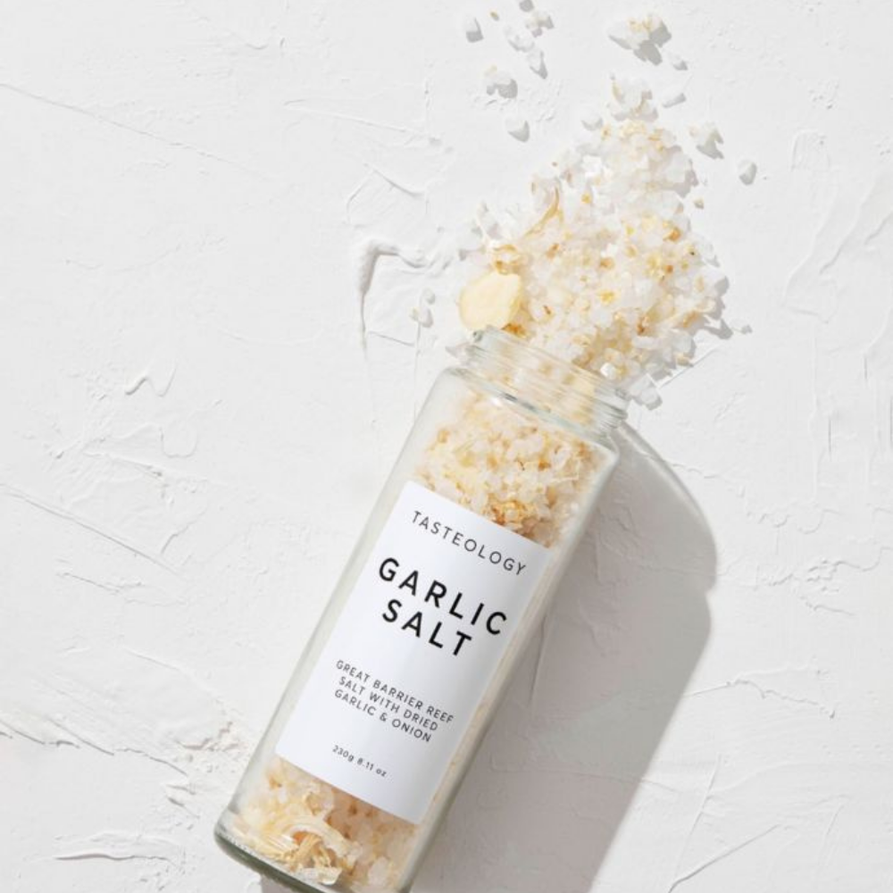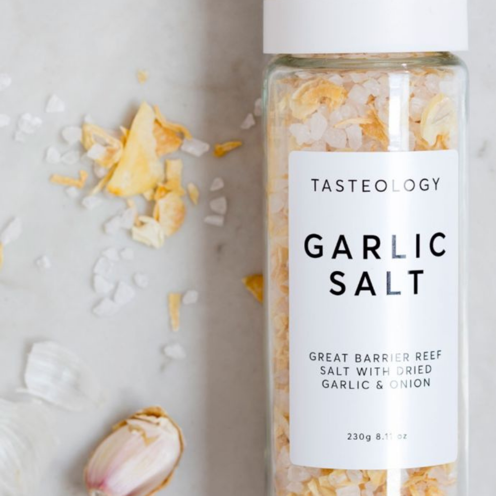 Our TASTEOLOGY Garlic & Onion Salt has a base of Great Barrier Reef white rock salt, which has been carefully mixed in with garlic and onion granules to create a rich, flavoursome mix.