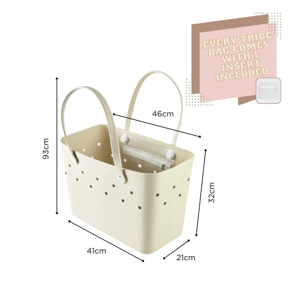 The Tribe Bag is designed with convenience in mind. The waterproof fabric ensures all your valuables stay safe and dry, while the spacious interior will easily fit everything you need for a day out and about. It also comes with double strap handles that are easy to carry while being sturdy and stable. And even if accidents happen, it’s easy to clean off any dirt or sand that might get on the surface - making it reusable time after time!