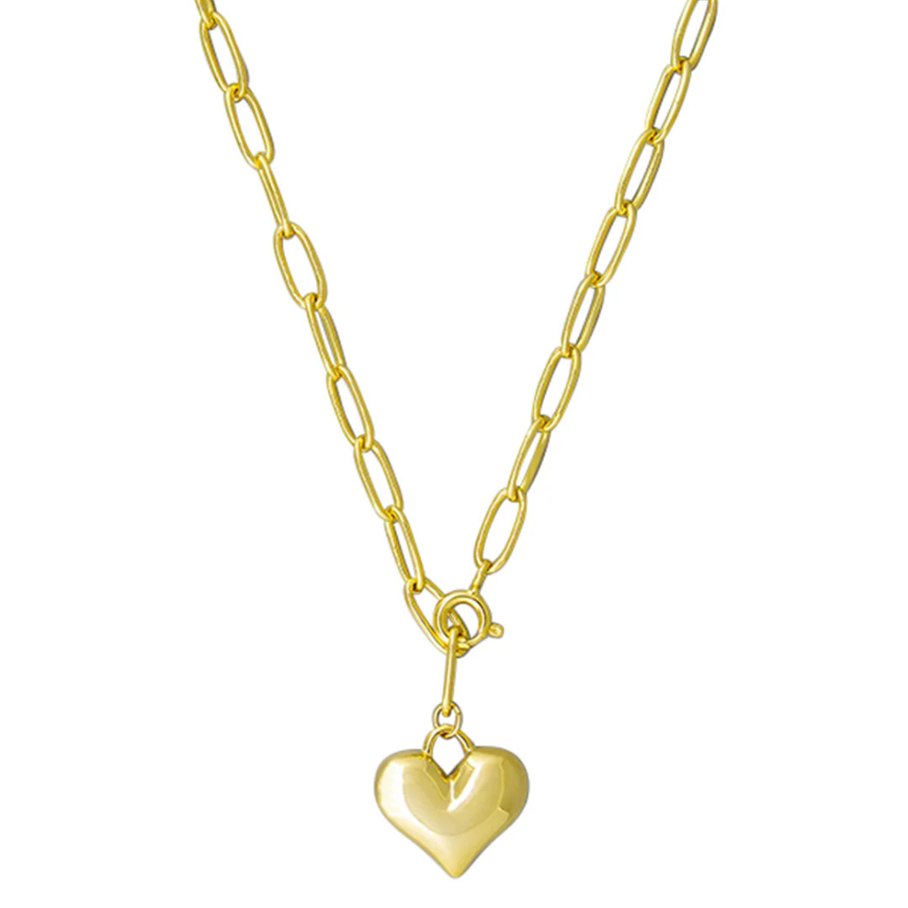 This Abigail Chain Necklace has a stylish, chunky gold chain with a large heart pendant. Its high quality materials create a strong, long-lasting piece that is sure to be a timeless addition to your wardrobe.
