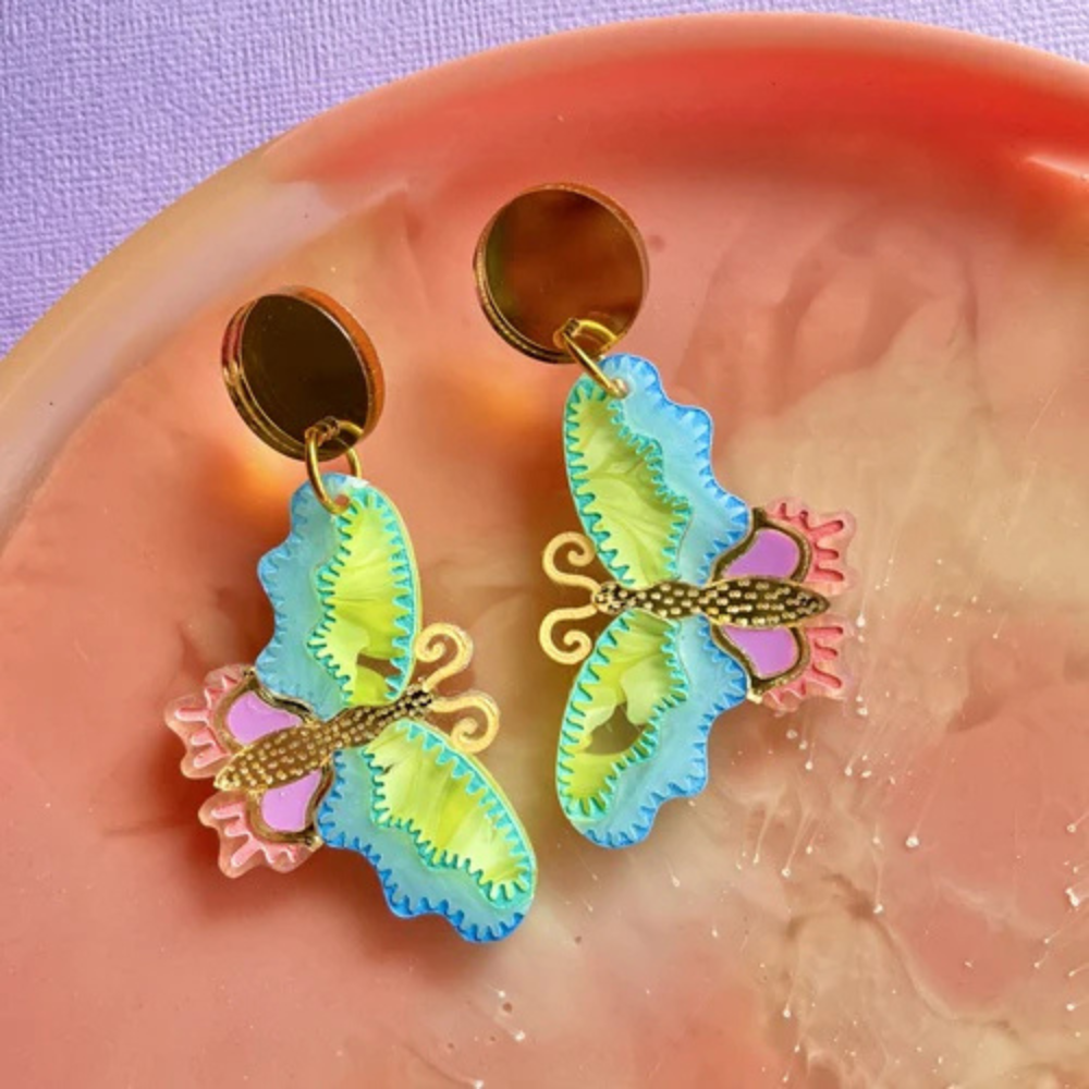 Single drop handmade lightweight acrylic earrings. Titanium posts for sensitive ears Approximately 70mm total height Approximately 40mm wide at the widest point