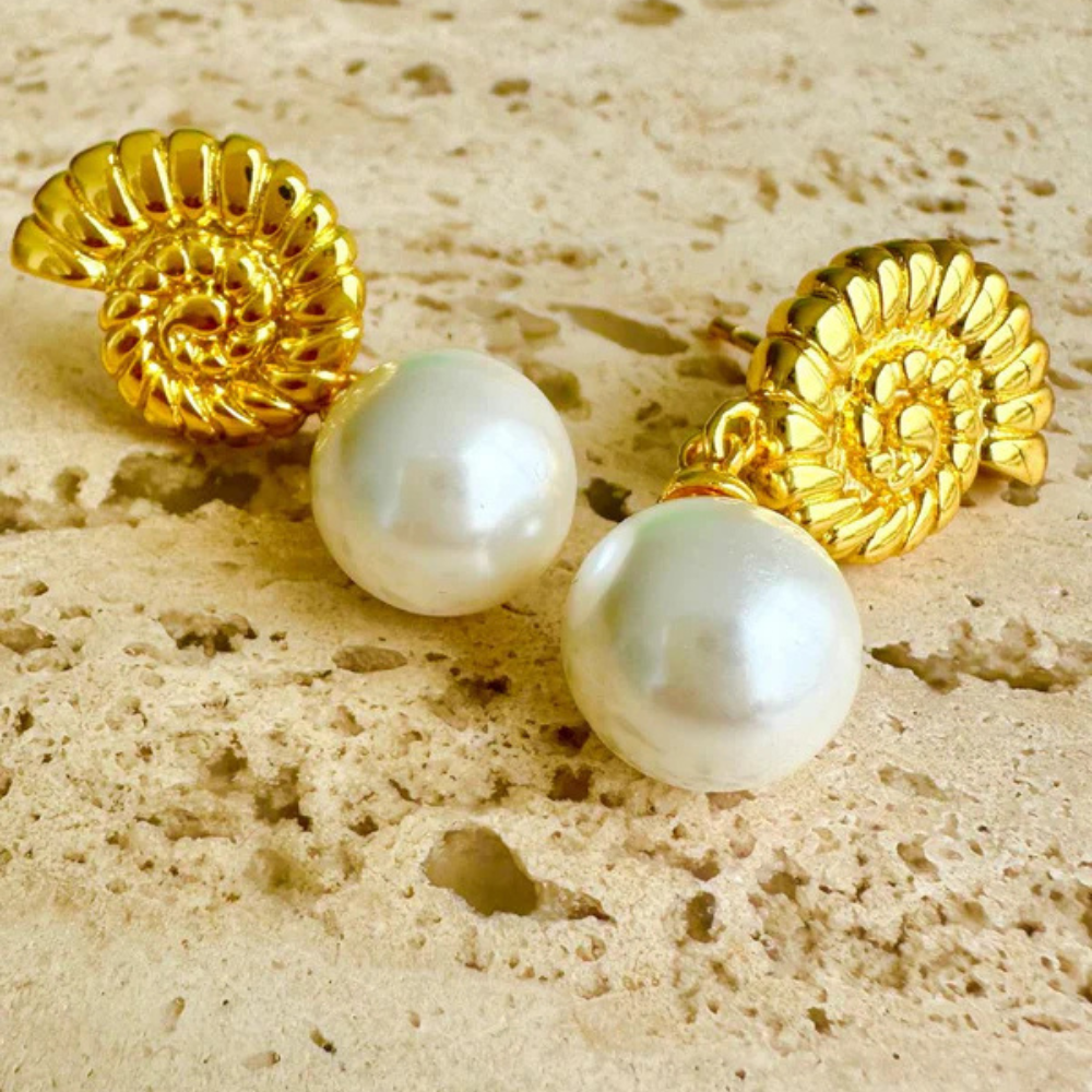 "Conch Shell" Pearl Earrings Gold Plated Sterling Silver is backordered and will ship as soon as it is back in stock.