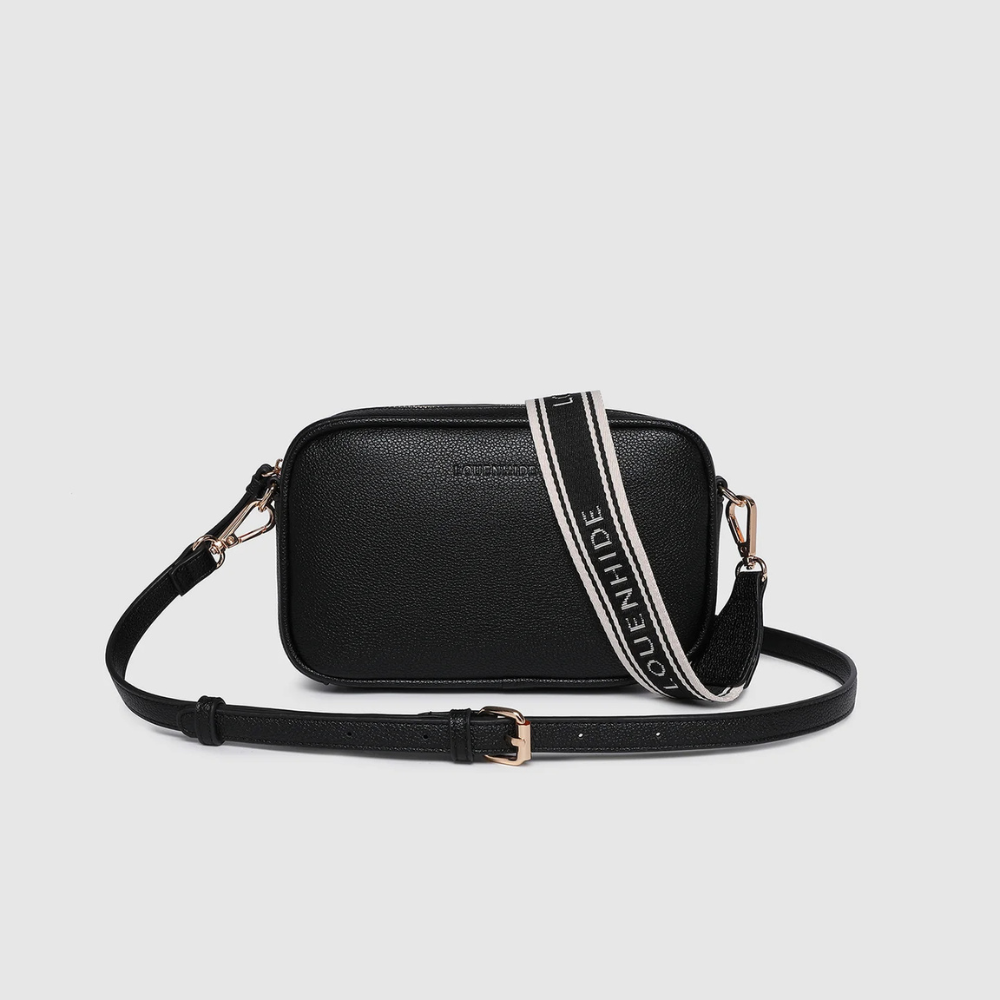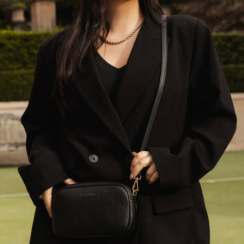 The Bianca Black Crossbody Bag is a stylish yet practical companion, thoughtfully crafted for life on the move. This women’s crossbody bag features a compact, camera-style silhouette that combines everyday functionality with timeless appeal. Made from buttery soft vegan leather and finished with light gold hardware, Bianca Black brings a polished touch to casual styling. As a travel-friendly crossbody, she’s lightweight and easy to wear, with two interchangeable strap options: a bold logo webbing guitar strap for statement appeal, or a matching adjustable vegan leather strap for a more refined look. A secure zipper handbag by design, Bianca Black keeps your essentials safe and within easy reach. Inside, you’ll find two internal pockets to keep your valuables organised and close at hand. Effortlessly versatile, she is the hands-free essential that keeps up with you from daily errands to weekend escapes.