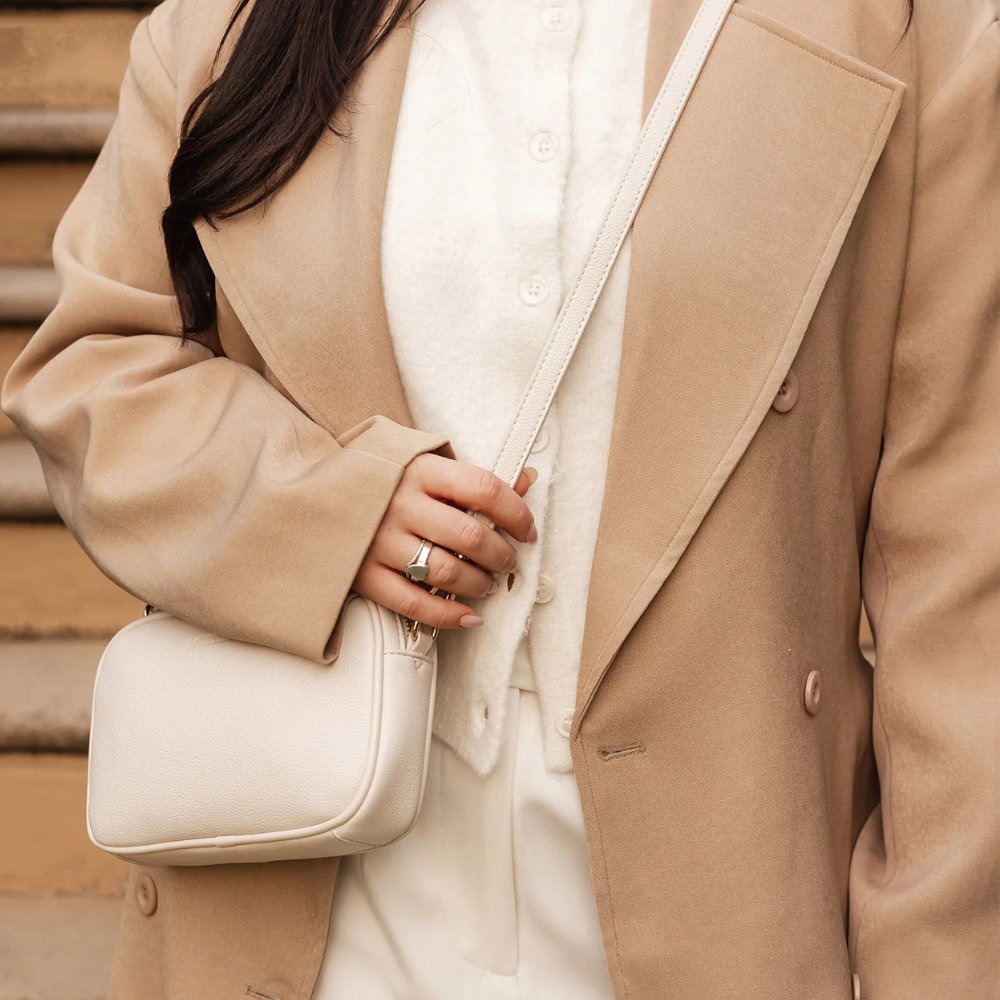 The Bianca Vanilla Crossbody Bag is a stylish yet practical companion, thoughtfully crafted for life on the move. This women’s crossbody bag features a compact, camera-style silhouette that combines everyday functionality with timeless appeal. Made from buttery soft vegan leather and finished with light gold hardware, Bianca Vanilla brings a polished touch to casual styling. As a travel-friendly crossbody, she’s lightweight and easy to wear, with two interchangeable strap options: a bold logo webbing guitar strap for statement appeal, or a matching adjustable vegan leather strap for a more refined look. A secure zipper handbag by design, Bianca Vanilla keeps your essentials safe and within easy reach. Inside, you’ll find two internal pockets to keep your valuables organised and close at hand. Effortlessly versatile, she is the hands-free essential that keeps up with you from daily errands to weekend escapes.