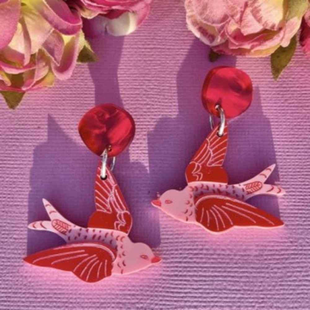 "Etched Swallow" Stud Dangle Earrings - Red is backordered and will ship as soon as it is back in stock.
