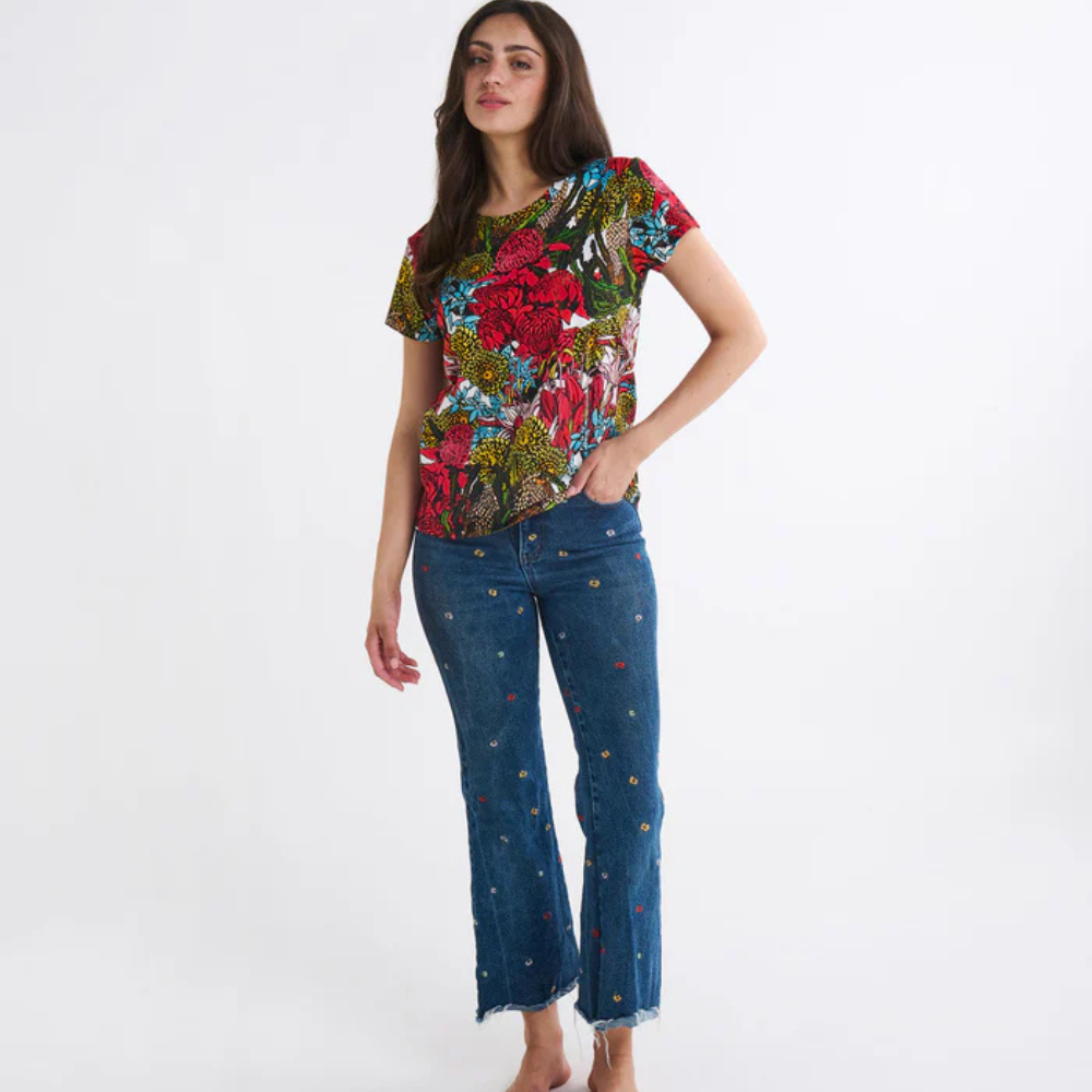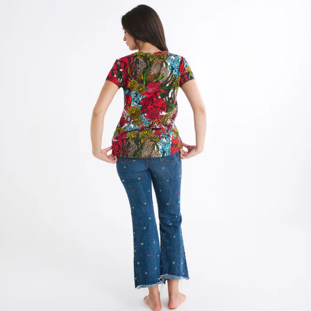 Our Kip&Co x Margaret Preston Bush Natives Adult Organic Cotton T-shirt is the wardrobe staple you’ll reach for again and again. Bursting with a vibrant tangle of waratahs, banksias, and wildflowers, it instantly brings summer vibes to any outfit. This one-of-a-kind piece celebrates the glory of Margaret Preston and her iconic floral masterpieces, bringing her bold, intricate designs to life in soft, breathable organic cotton. Perfect for layering, lounging, or standing out in style, it’s a wearable tribute to one of Australia’s most celebrated artists.