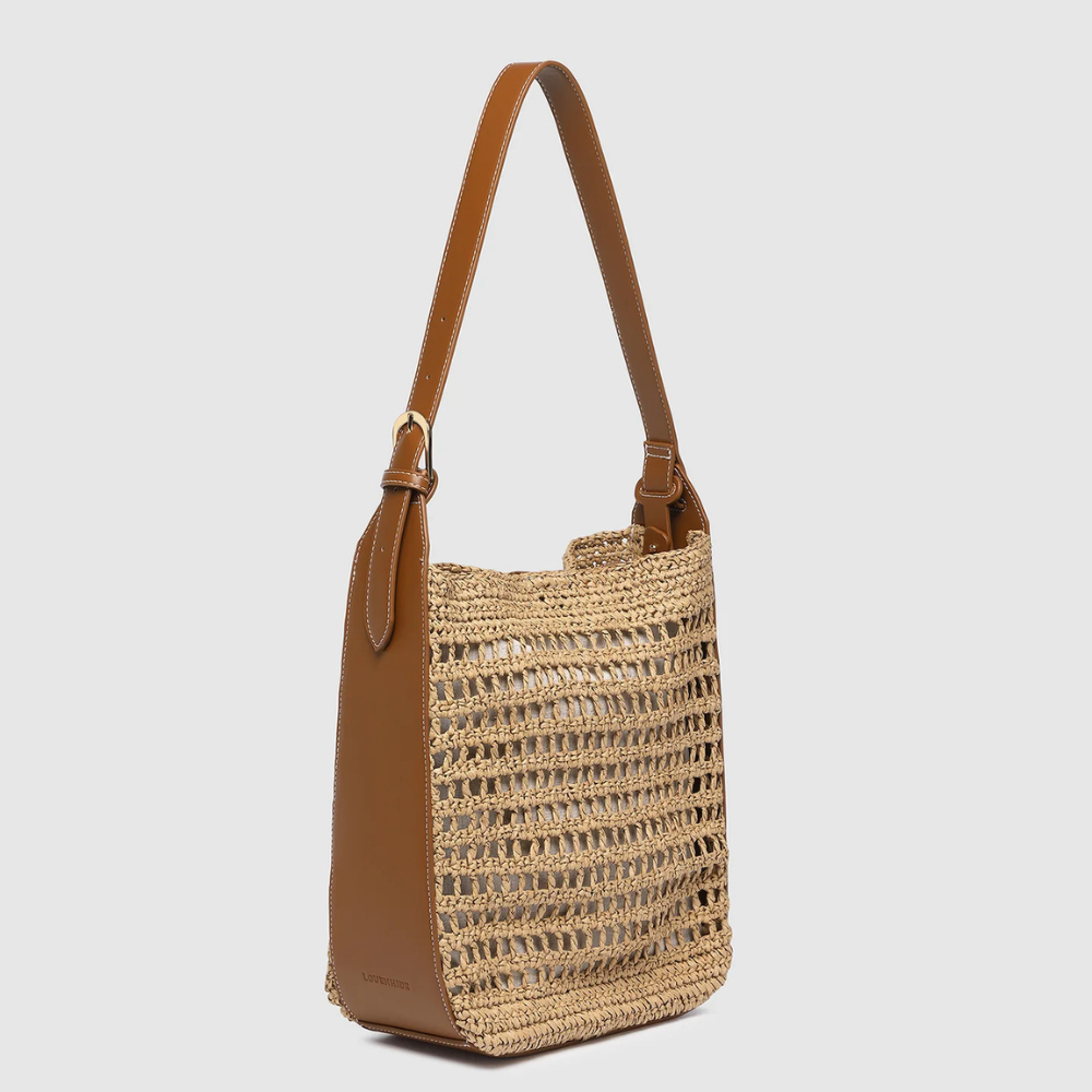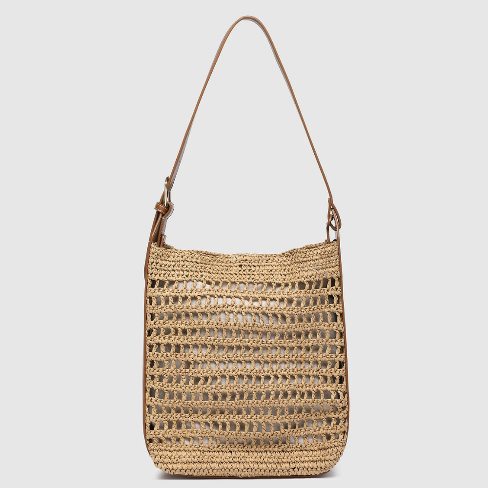 Effortless and versatile, the Louisa Natural Tan Shoulder Bag earns its place among the best summer handbags. Crafted from natural raffia in a relaxed, slouchy silhouette, this open weave bag captures the ease of coastal living. Her softly structured bucket shape offers a spacious interior, ideal for carrying daily essentials, beachside must-haves, or a fresh market find. A smooth tan vegan leather adjustable shoulder strap adds a refined contrast and comfortable carry, designed to sit neatly on the shoulder from morning to evening. A secure zip closure keeps your belongings safe wherever the day takes you. Whether you’re heading to golden hour drinks or a long lunch by the water, Louisa Natural Tan blends practicality with laid-back charm.