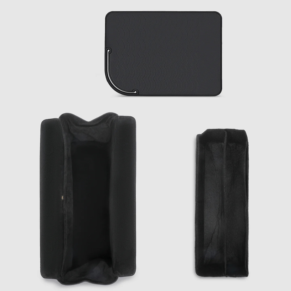 The Margot Black Hair Tool Travel Case is your elegant companion for styling on the move. Designed with travel and organisation in mind, Margot's sleek silhouette is crafted in a rich satin-like finish, bringing a timeless touch to your beauty routine. Her structured form, spacious interior and soft magnetic closure make packing styling tools, like the Dyson Airwrap, feel effortless. Complete with a matching heat mat, Margot ensures you can style with ease and protect your surfaces wherever you go. Whether you’re jetting off or freshening up between plans, she blends function with quiet luxury, keeping your essentials neatly stored without compromising on style. Slip her into your carry-on or display her on your vanity—she’s as beautiful as she is practical.