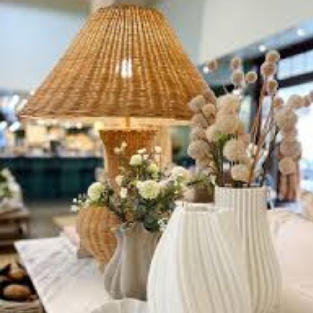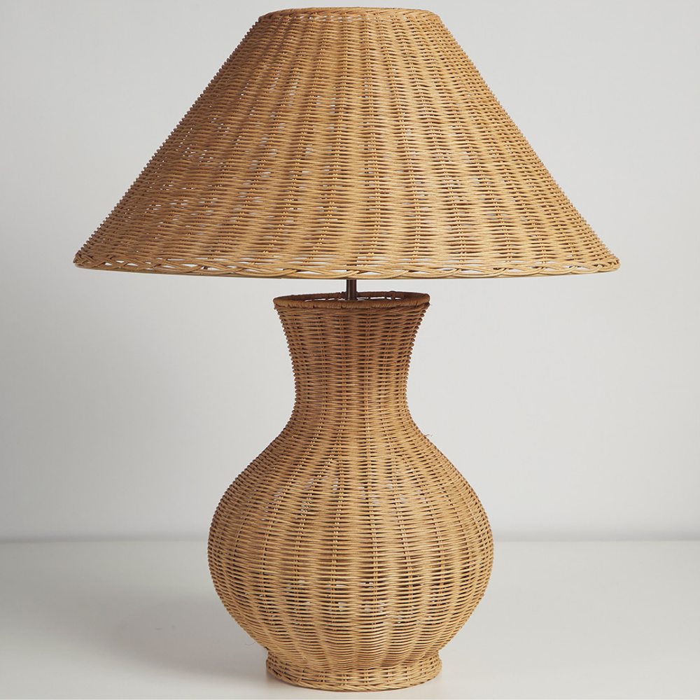 The Parasol Lamp boasts an elegant stature and vintage-inspired form in a natural wicker, finished with a stunning tapered shade.