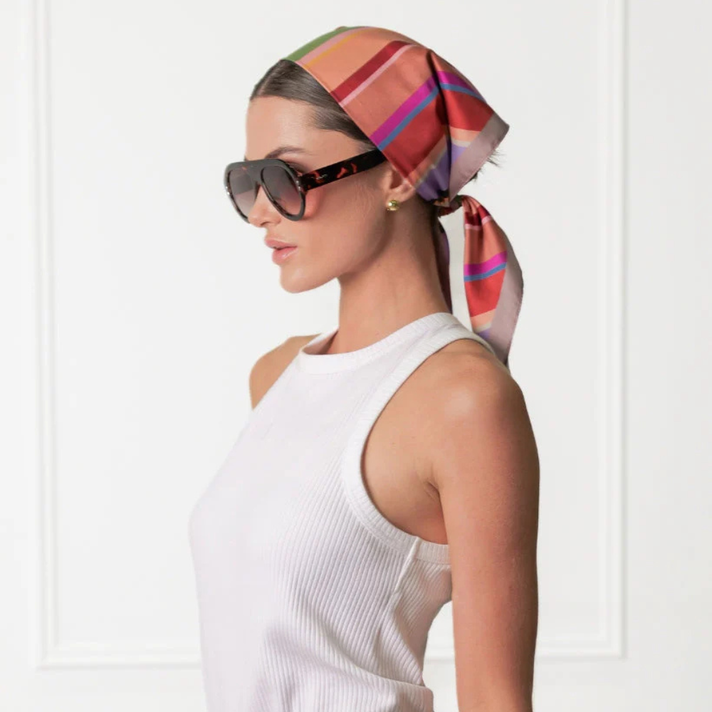 Versatile, this striped satin scarf is an easy way to elevate your look if you’re going for a casual vibe or something a bit more polished. Tied around your neck or on your handbag, this scarf is a beautiful addition to your accessories collection.