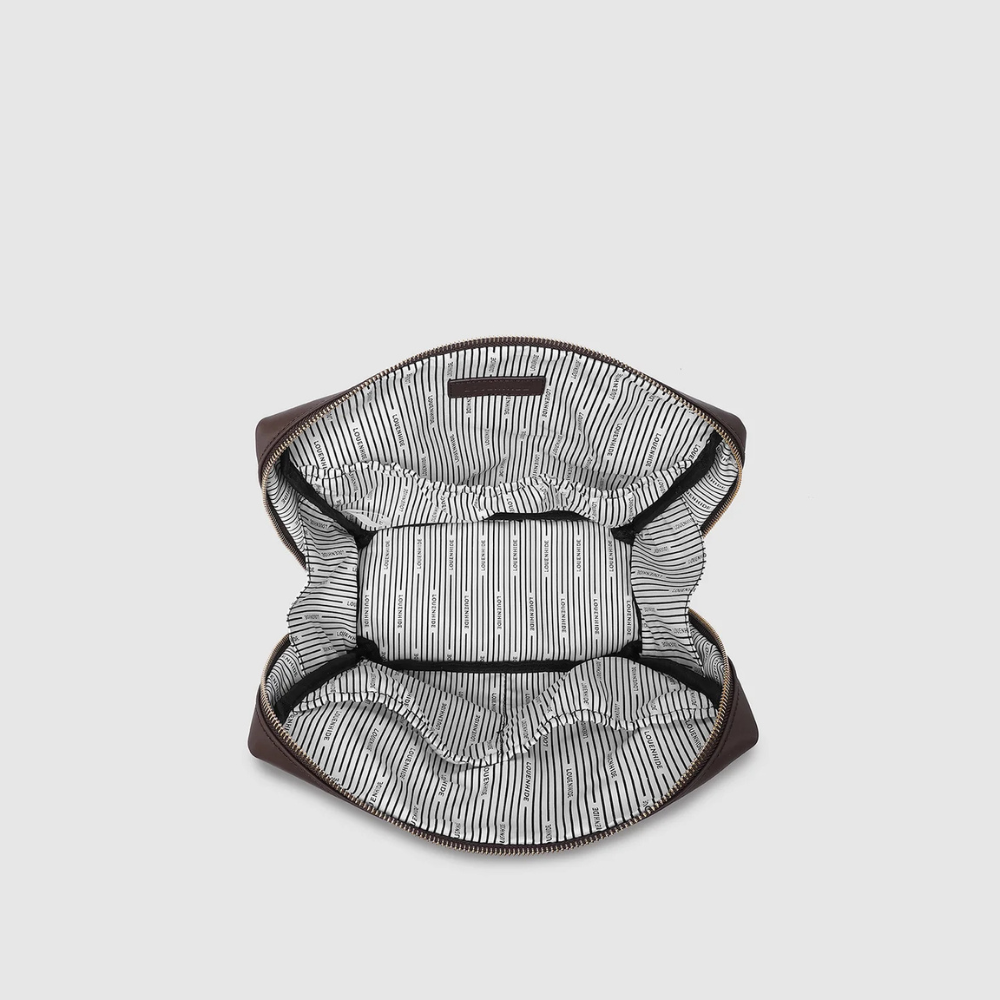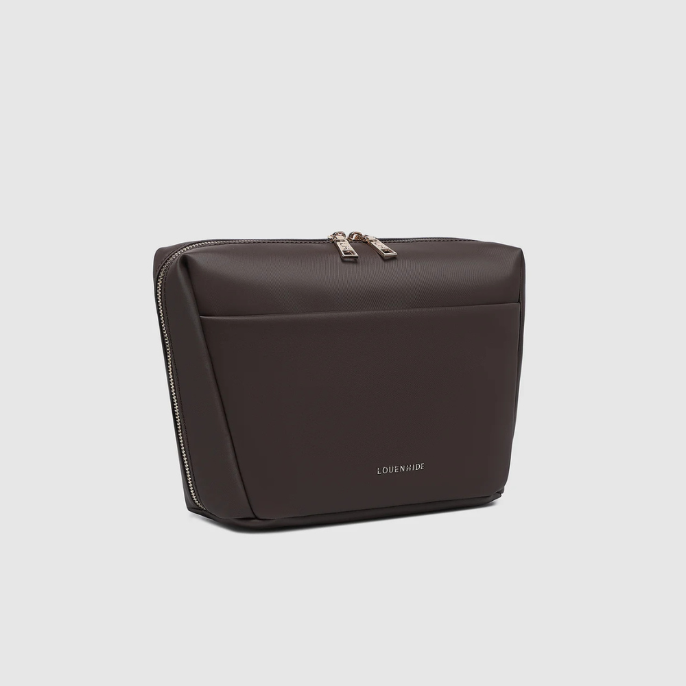 The Vanessa Chocolate Cosmetic Bag is a travel-ready essential designed to bring ease and elegance to your beauty routine. Crafted with a sleek silhouette and smooth zip-around opening, Vanessa Chocolate lays flat to reveal your products at a single glance- no digging, no fuss. Thoughtfully designed for both daily use and weekend escapes, her wide-opening interior offers seamless organisation. Compact enough to slip into your travel tote or suitcase, Vanessa Chocolate travels light without leaving the essentials behind. Perfect for those who like their beauty routine as organised as their itinerary.